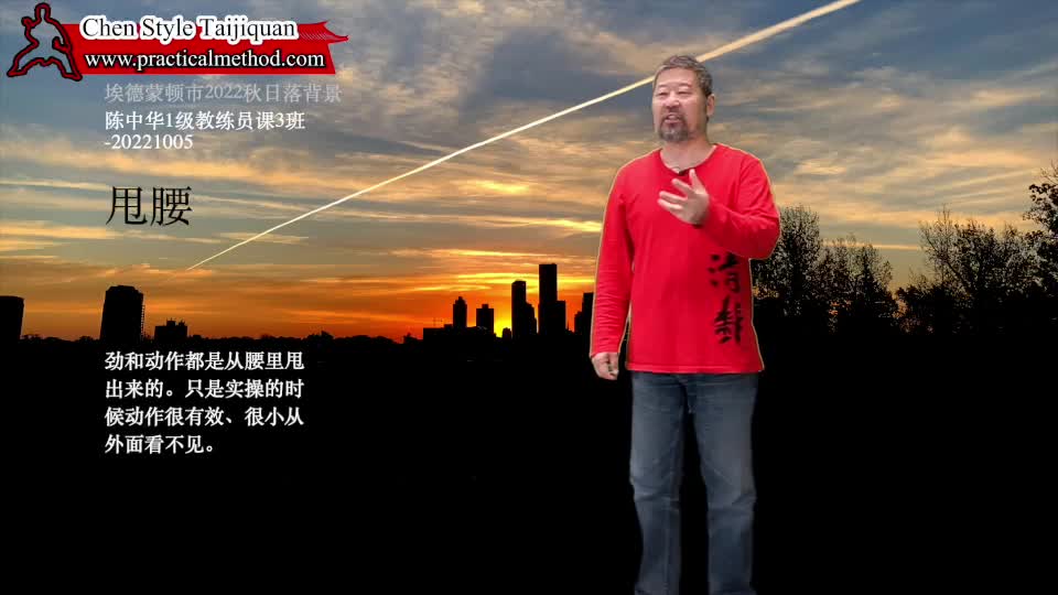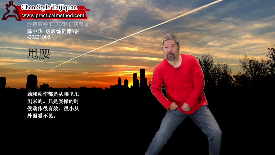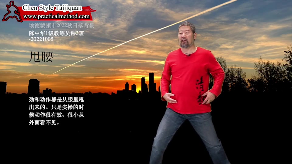 甩腰-陈中华1级教练员课3班-20221005。劲和动作都是从腰里甩出来的。只是实操的时候动作很有效、很小从外面看不见。