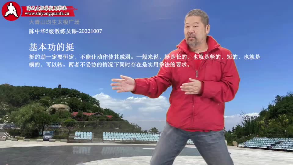 基本功的挺-陈中华5级教练员课-20221007。挺的劲一定要恒定,不能让动作使其减弱。一般来说,挺是长的,也就是竖的,短的,也就是横的,可以转。两者不妥协的情况下同时存在是实用拳法的要求。