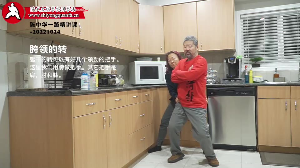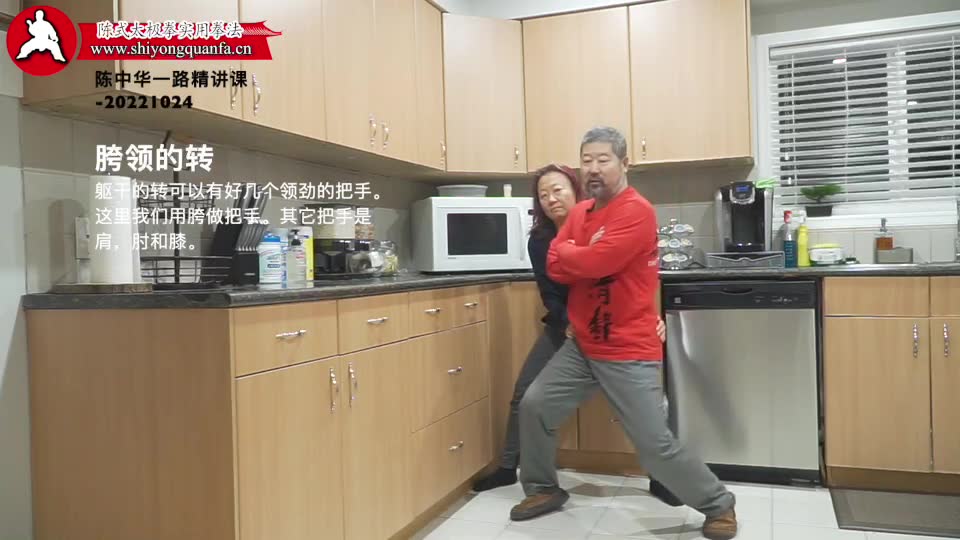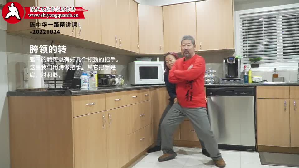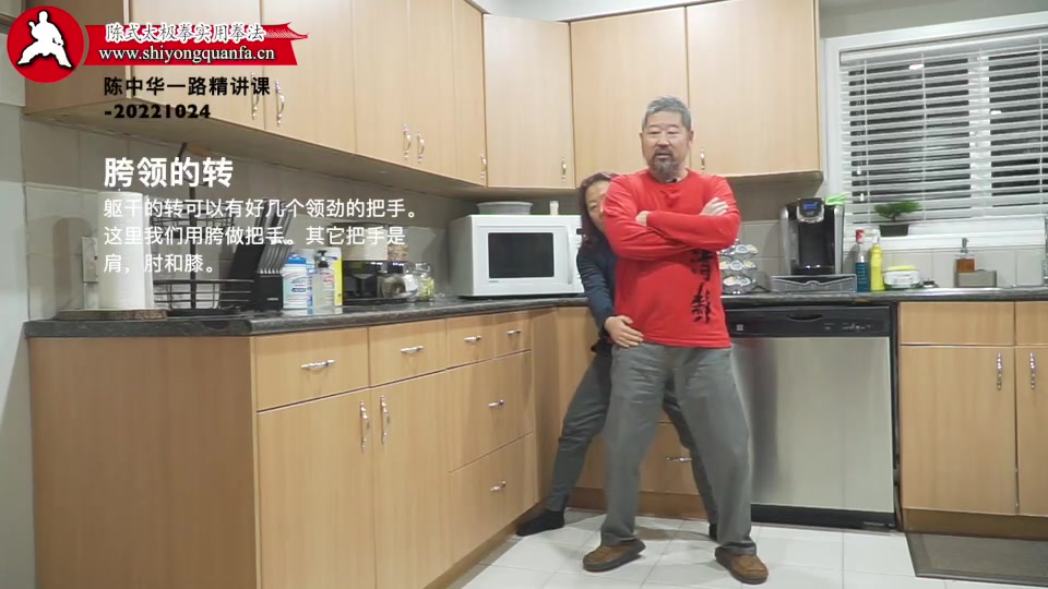胯领的转-陈中华一路精讲课-20221024。躯干的转可以有好几个领劲的把手。这里我们用胯做把手。其它把手是肩,肘和膝。