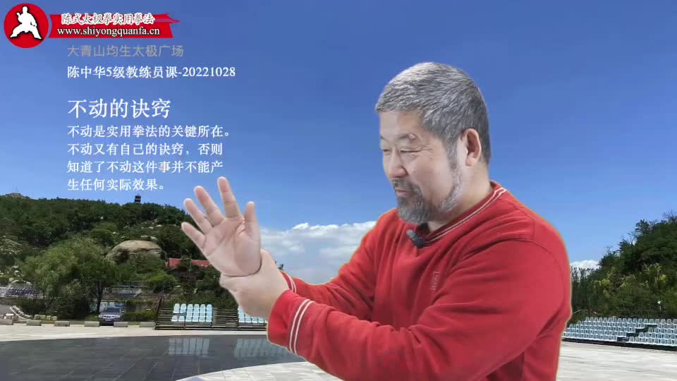 不动的诀窍-陈中华5级教练员课-20221028。不动是实用拳法的关键所在。不动又有自己的诀窍,否则知道了不动这件事并不能产生任何实际效果。