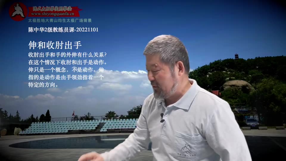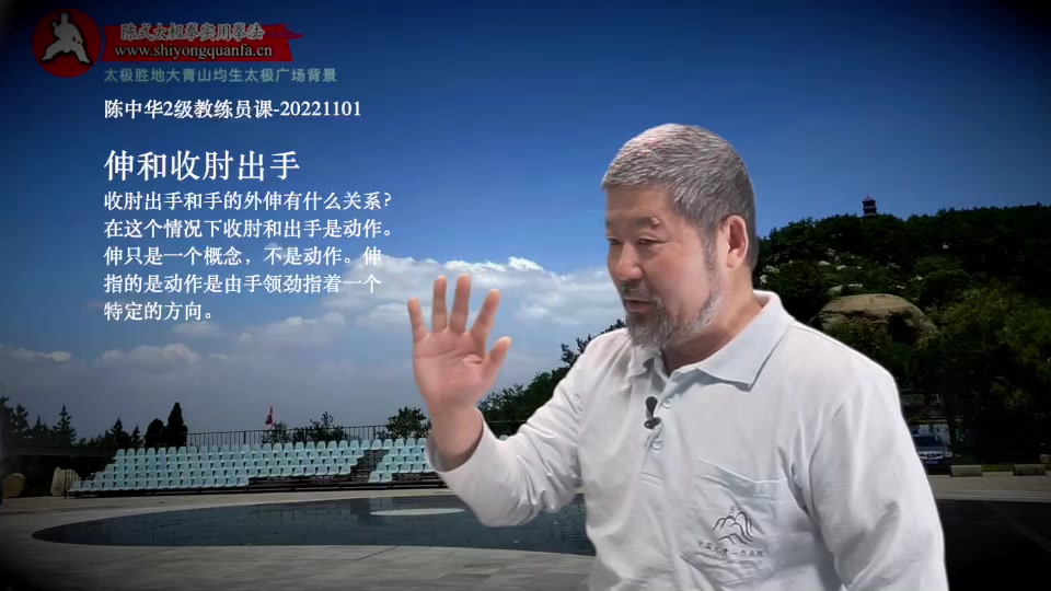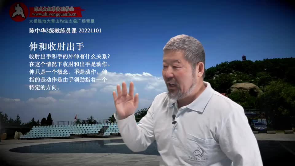 伸和收肘出手-陈中华2级教练员课-20221101。收肘出手和手的外伸有什么关系?在这个情况下收肘和出手是动作。伸只是一个概念,不是动作。伸指的是动作是由手领劲指着一个特定的方向。