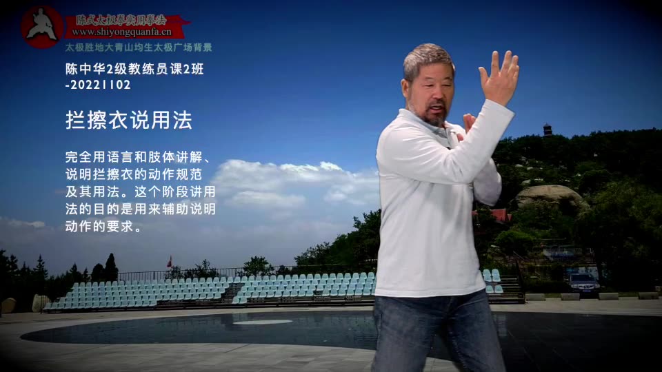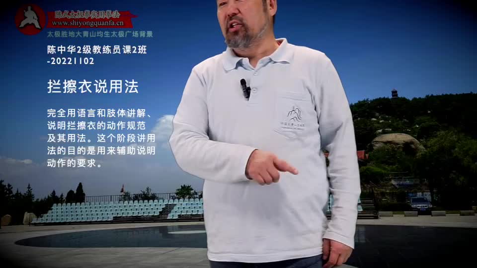 拦擦衣说用法-陈中华2级教练员课2班-20221102。完全用语言和肢体讲解、说明拦擦衣的动作规范及其用法。这个阶段讲用 法的目的是用来辅助说明动作的要求。
