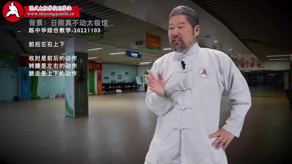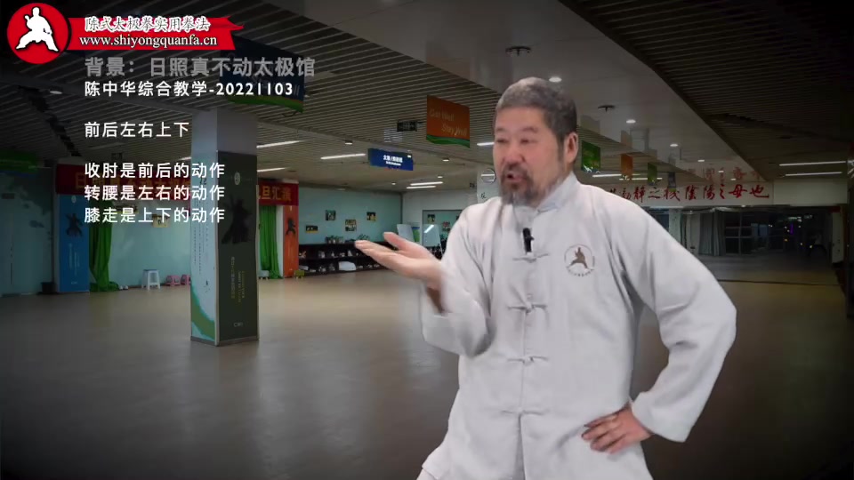 前后左右上下-陈中华综合教学-20221103。收肘是前后的动作。转腰是左右的动作。膝走是上下的动作。