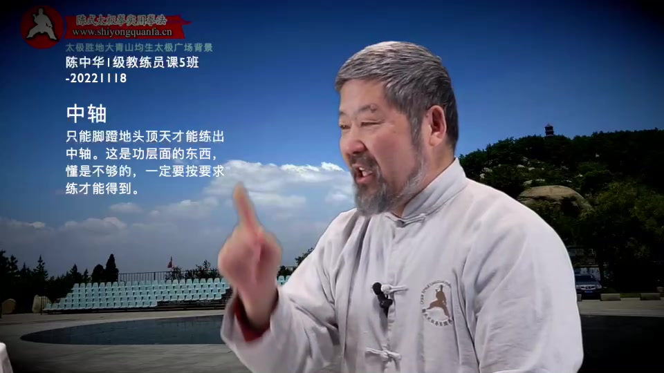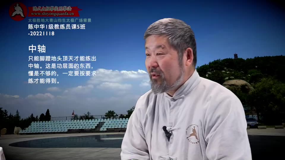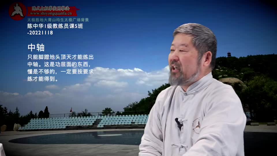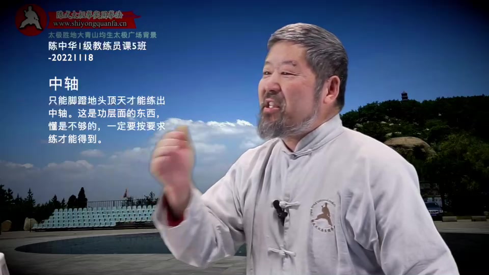 中轴-陈中华1级教练员课5班-20221118。只能脚蹬地头顶天才能练出中轴。这是功层面的东西,懂是不够的,一定要按要求练才能得到。