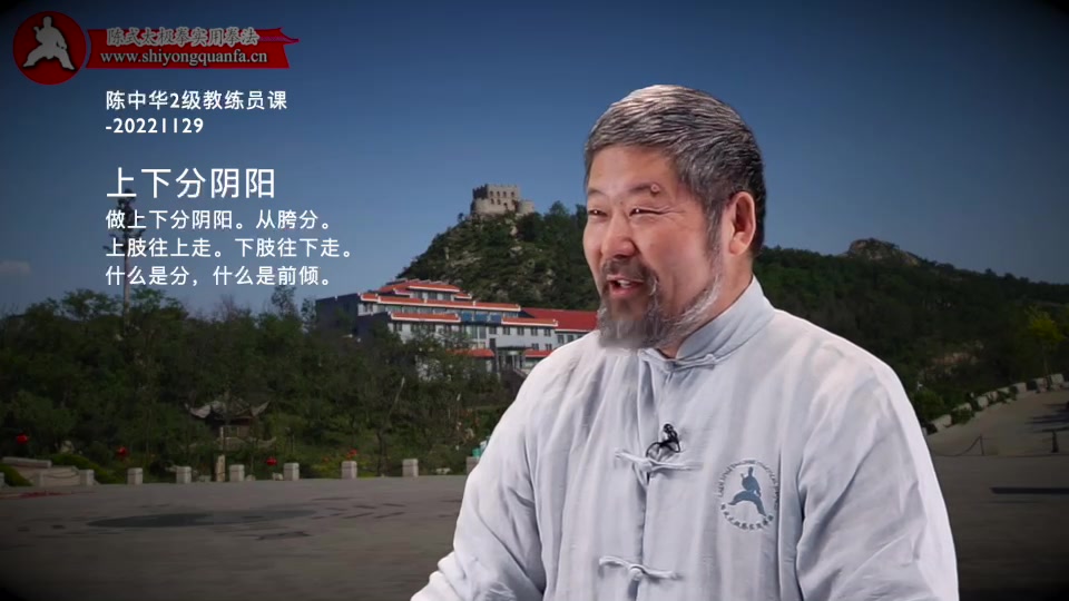 上下分阴阳-陈中华2级教练员课-20221129。做上下分阴阳。从胯分。上肢往上走。下肢往下走。什么是分,什么是前倾。
