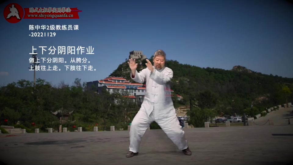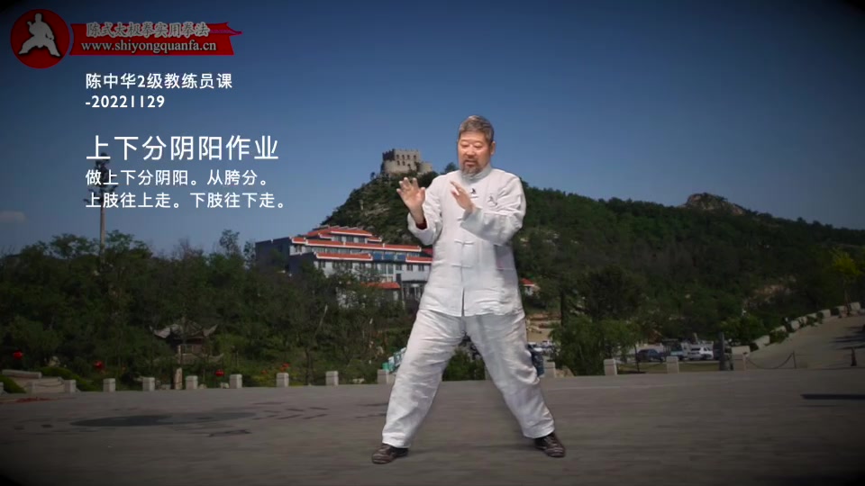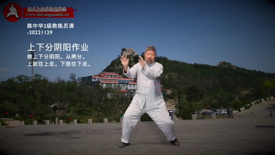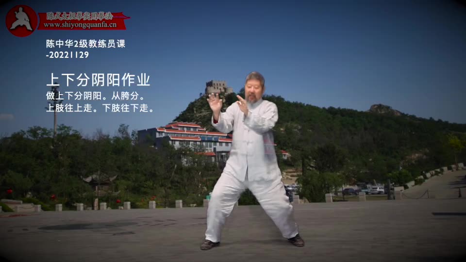 上下分阴阳作业-陈中华2级教练员课-20221129。做上下分阴阳。从胯分。上肢往上走。下肢往下走。什么是分,什么是前倾。