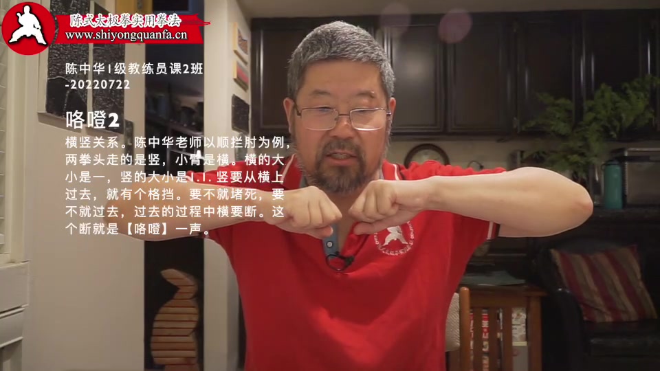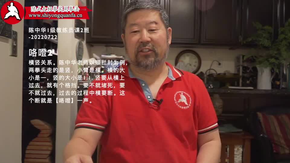 咯噔-中华1级教练员课2班-20220722。横竖关系。陈中华老师以顺拦肘为例,两拳头走的是竖,小臂是横。横的大小是一,竖的大小是1.1. 竖要从横上过去,就有个格挡。要不就堵死,要不就过去,过去的过程中横要断。这个断就是【咯噔】一声。