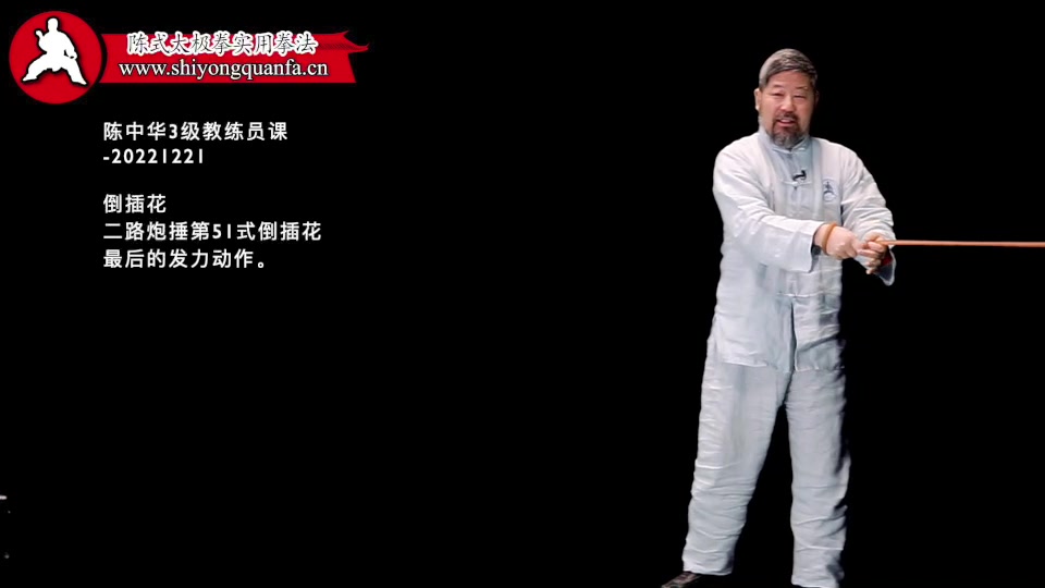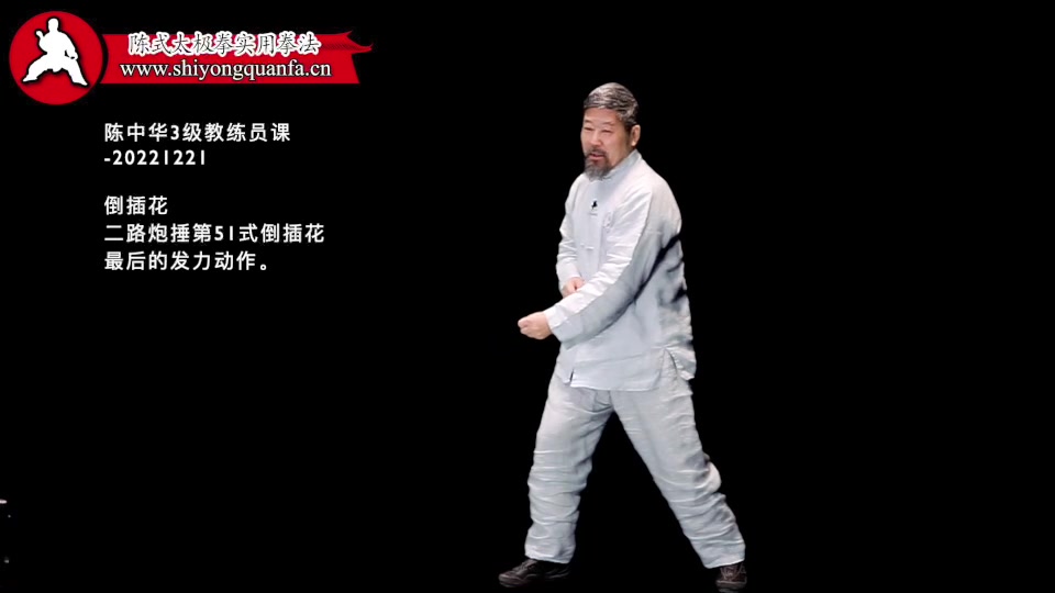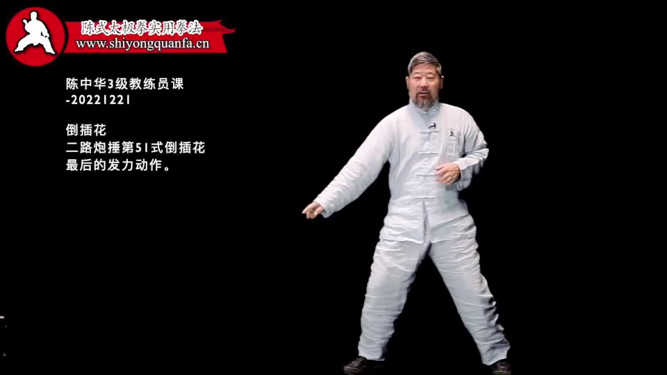 倒插花-陈中华3级教练员课-20221221。倒插花是二路炮捶地51式。最后一个拳头发力动作。动作打顺了之后可以用作单式模版反复重复练习。