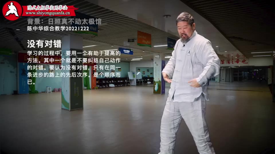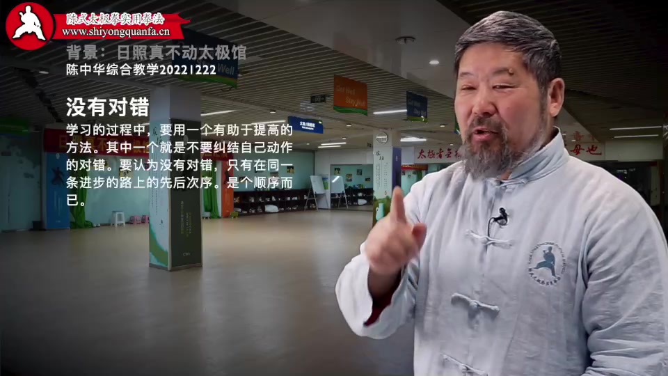 没有对错-陈中华综合教学20221222。学习的过程中,要用一个有助于提高的方法。其中一个就是不要纠结自己动作的对错。要认为没有对错,只有在同一条进步的路上的先后次序。是个顺序而已。