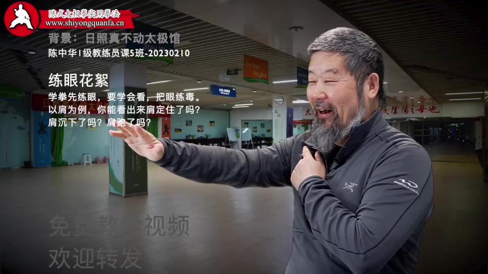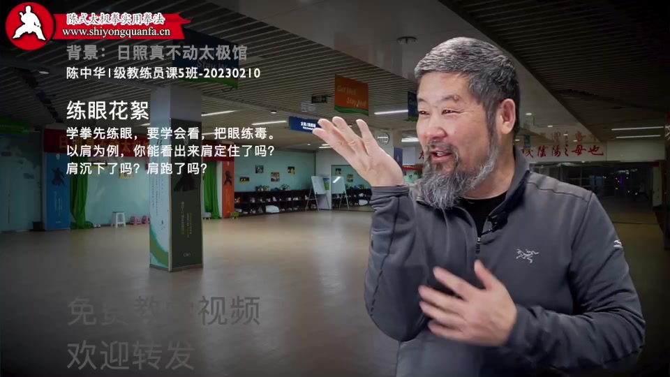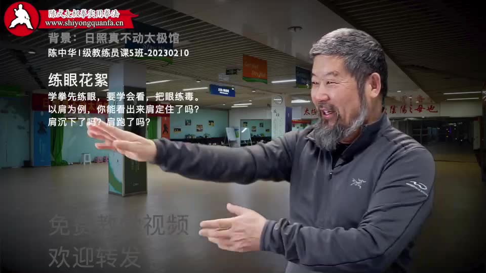 练眼花絮-陈中华1级教练员课5班-20230210。学拳先练眼,要学会看,把眼练毒。以肩为例,你能看出来肩定住了吗?肩沉下了吗?肩跑了吗?https://www.zhenbudong.cn/archives/237410