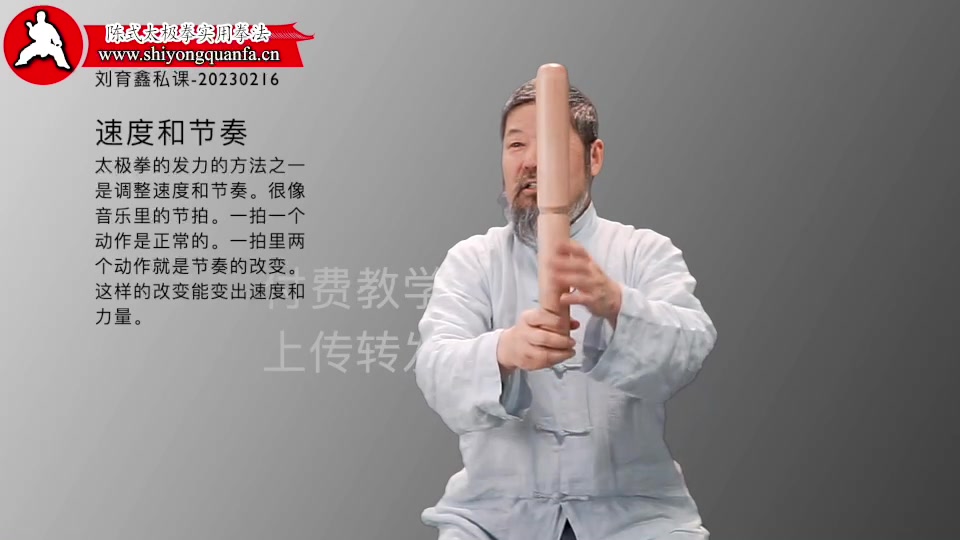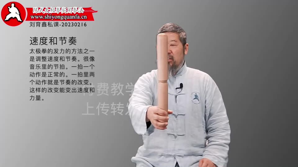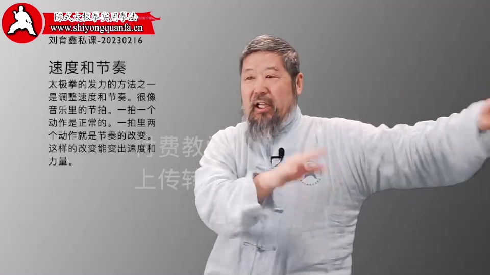 速度和节奏-刘育鑫私课-20230216。太极拳的发力的方法之一是调整速度和节奏。很像音乐里的节拍。一拍一个动作是正常的。一拍里两个动作就是节奏的改变。这样的改变能变出速度和力量。