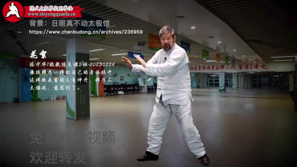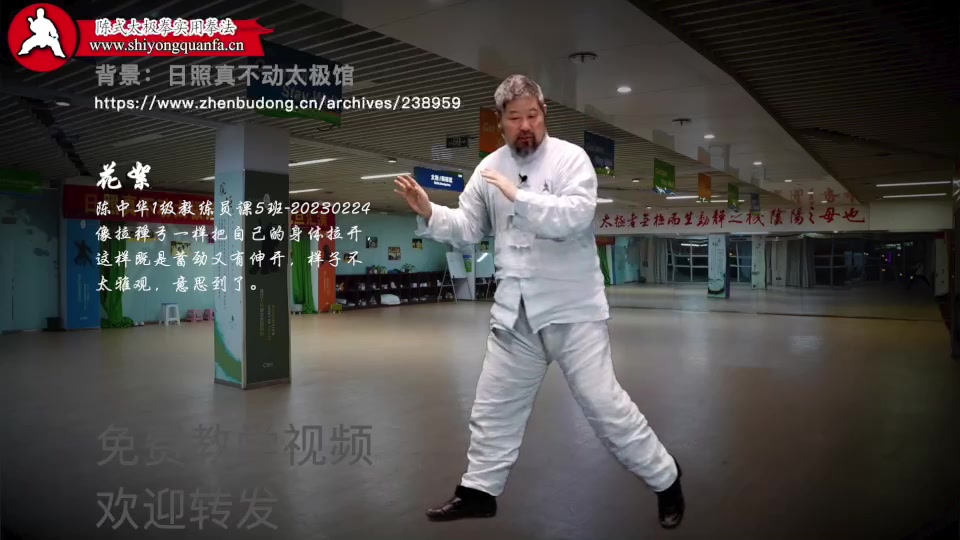 花絮-陈中华1级教练员课5班-20230224。 像拉弹弓一样把自己的身体拉开,这样既是蓄劲又有伸开,样子不太雅观,意思到了。 我们要看到太极的动作本质的干练,简洁,像诗一样的言简意赅。