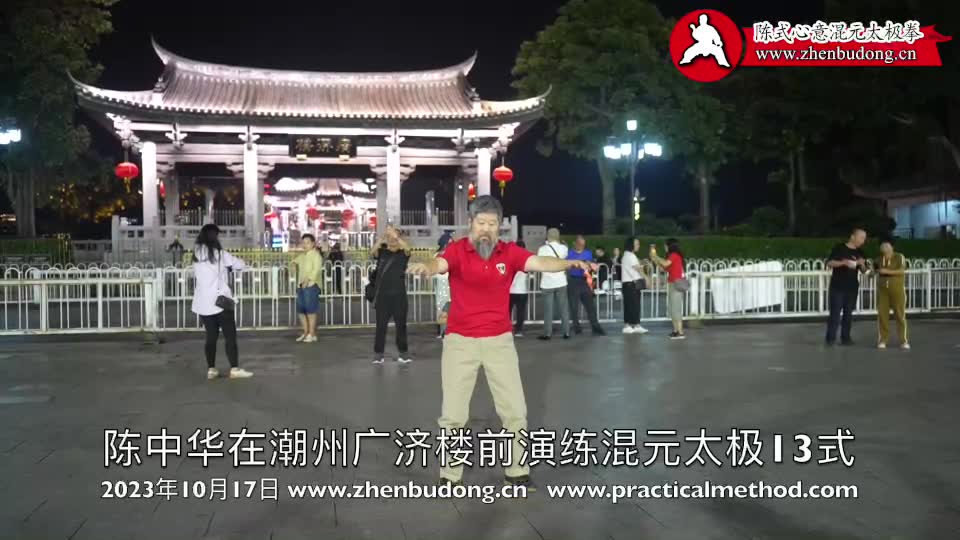 陈中华混元13-第5届潮汕实用拳法讲座20231017。在汕头广济楼前的即兴混元13式。