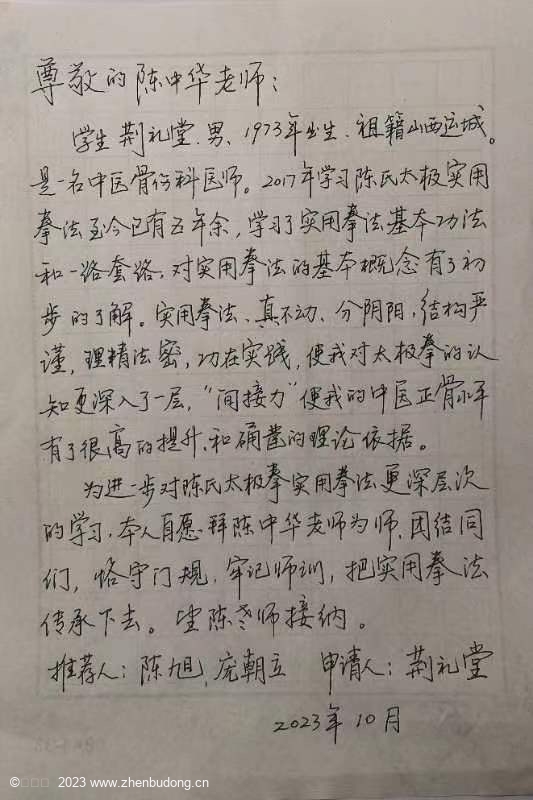 荆礼堂递交拜师贴20231029 发表于 2023年10月29日 由 陈中华官网通讯员 荆礼堂递交拜师贴20231029 荆礼堂递交拜师贴20231029 更多帖子苏雷拜师贴 (强烈推荐)王龙拜师贴 (强烈推荐)John Upshaw:何家伟推荐信 (强烈推荐)何家伟拜师贴 (强烈推荐)