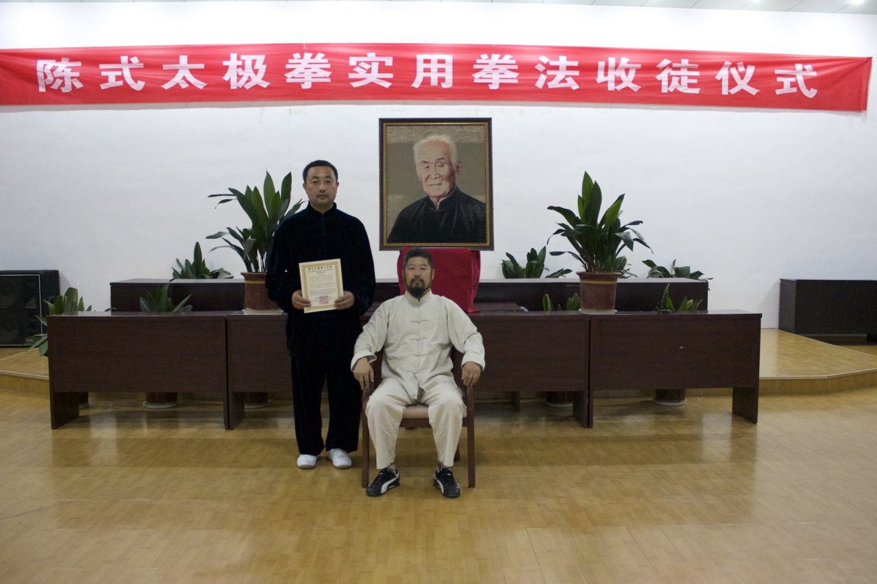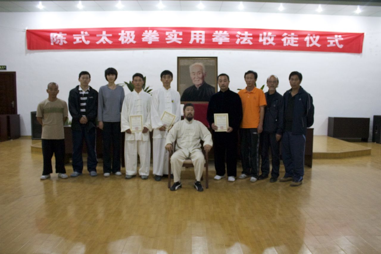 王龙、苏雷、陈旭2012年10月三日在大青山被接受为陈中华老师的入室弟子。王龙和苏雷来自山东日照。陈旭来自山东沂源。拜师仪式由洪均生宗师嫡孙洪森主持,参加大青山第七届陈式太极拳实用拳法大青山讲座的全部学院参加了这次拜师活动。