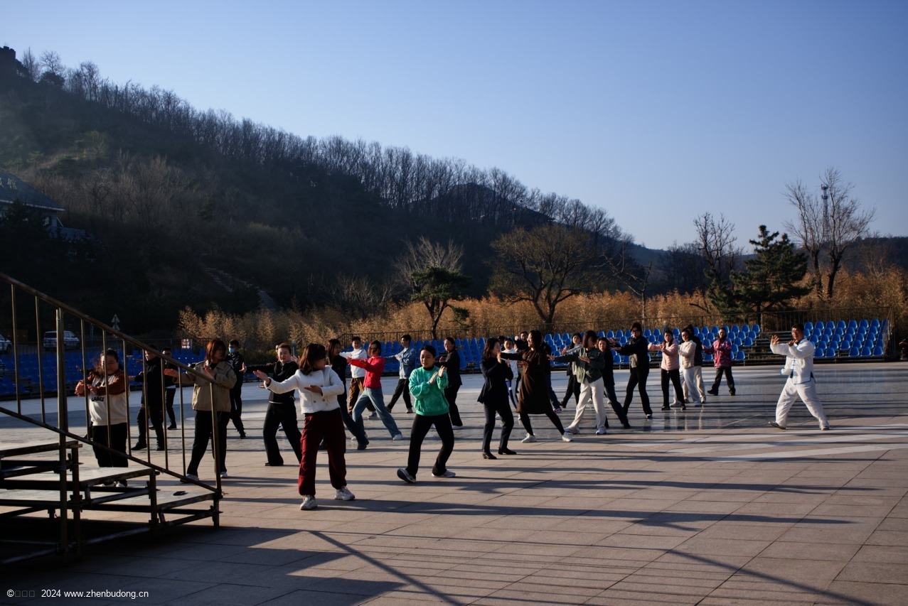 又见太极拳。其实这是说在均生太极广场上又见太极拳。对大青山来说,作为新时代的太极胜地,太极拳不敢说和青山并存,但一定可以说一年四季太极拳不断。只不过冬季我们在室内练拳罢了。