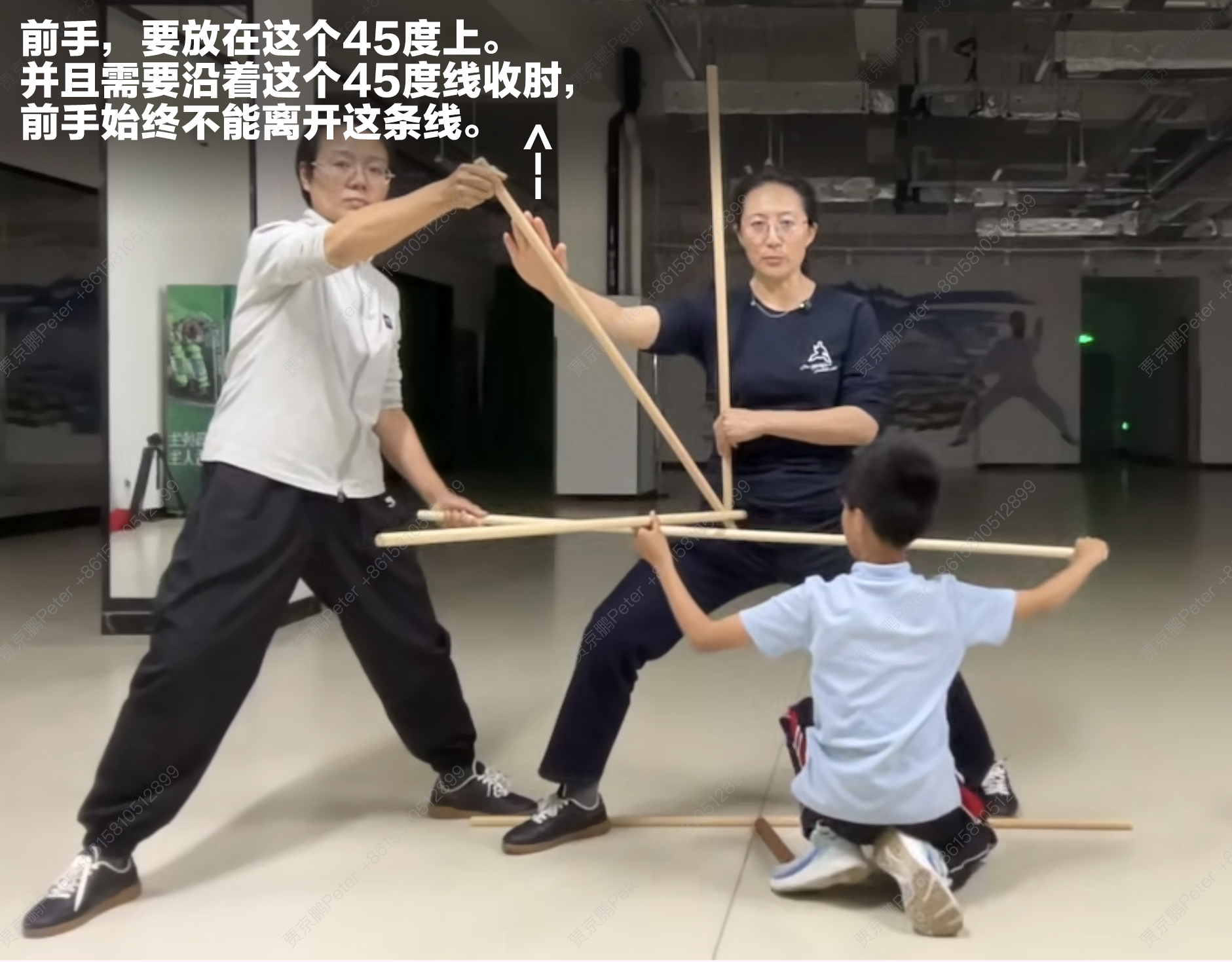 第二,赵景玉教练在课上,着重笔墨,严格强调了“坐腕”作为各种动作的必须性要求。这对我意识上是很有用的。因为我以前的印象里,只是记得赵教练用温柔的语气和颜悦色地讲“京鹏啊,你这个手弯了啊,一定要直啊”,而忘记了她对这个要领的严正要求。以至于,我在做动作的很多时候,手腕其实都是弯的。要知道,这是个太重要的基础性问题,直接关系到劲力的通达。