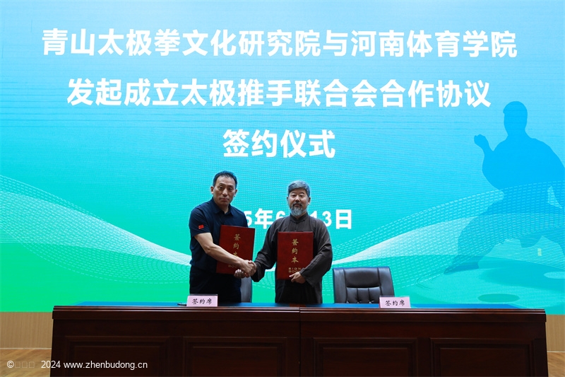 随后,青山太极拳文化研究院院长陈中华与河南体育学院武术与民族传统体育系主任胡玉玺签订发起成立太极推手联合会战略合作意向书,双方同意通过联合发起成立太极推手联合会,利用双方资源互补,共同推太极拳运动的世界推广。与《少林与太极》杂志主编申国卿签订战略合作意向书,双方同意建立战略合作伙伴关系,共同创建中华太极拳国际传播协同创新高端综合平台,以实现资源共享、优势互补,打造中华太极拳国际传播优秀品牌。与日照广播影视集团(台)党委委员、副总编辑韩华立签订战略合作协议,双方同意通过整合双方资源,利用电视、新媒体、官方网站等媒体平台,制作并播出武术太极拳专题节目,围绕日照市“活力之城、运动之城、健康之城”发展战略要求,聚力打造“国际太极文化名城”。