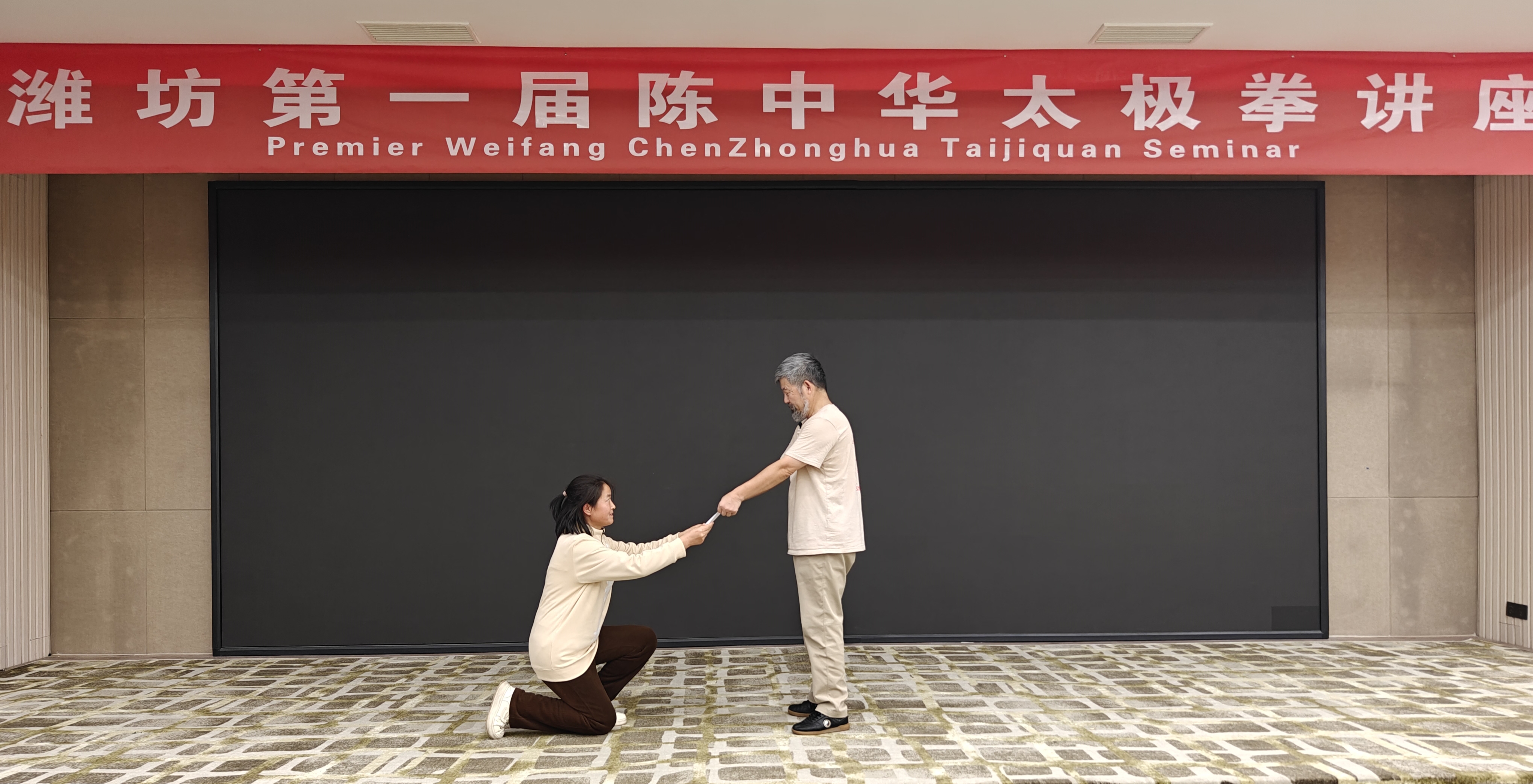 孟子里面说,今有璞玉於此,虽万镒,必使玉人雕琢之。况且自己只是一块顽石,能够遇到如此匠心独运的太极高手,何其有幸啊?是的,我确实很幸运。在潍坊第一届陈中华老师的太极拳讲座里面,经李红师姐引导,马全义教练推荐,这一刻我呈递了拜师贴,这一刻,空气仿佛也变得肃穆而庄重,我的内心,🈶敬畏,喜悦,期待,责任更多的是一种归属感。