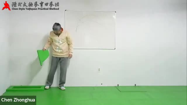 10、老师给郭林姐看动作,老师说郭林姐高低很好,老师说郭林姐手跑了,老师说什么意思呢,(小六封四闭)手这么一放,他肘的转动一定得转到手上去,老师手里拿着木挠给我们演示,我们做的时候,手上的劲没有往木挠上走,而是使手产生了位移,手跑了,必须一点不跑,完全逼到木桡头上去。老师又拿了根长棍给我们演示,老师说不管怎么样,手是在这个棍上的,而我们一做手自己就走了,所以老师说跑了我们不知道老师在说什么,老师不管怎么做,手都在那个棍上,我们就是没有这根棍,做的时候没有这根棍你看不见怎么回事,所以身体一直没找着那个东西。老师继续给我们演示,老师说手是对着前面一个点,眼睛一看这个点有一条线,老师怎么走都没离开那条线,我们不知道,就走了,所以老师能看出来我们走的方向,我们现在还是看不出来。老师拿三角架继续给我们演示,老师手是对着三角架最上方固定相机的底座,老师的手和底座的连线垂直屏幕,老师在做的时候,不管老师身体变化多大,我们是看不到老师的手的,但是我们一做,一下就看到手了,老师不管怎么样,一直在瞄着准,我们瞄准这句话我们听到了,但我们不知道这个准是什么东西。老师又给我们演示,老师的手不动,怎么走,肘都是走到手里面去了,我们走的时候手就跑一边去了,左右是这样,上下也是一样,不能一走手起来了,而只能沿着定好方向走,所以这个东西的概念是,他只能延伸,不能离开,你有一个点在前面他是目标,你就只能延伸,有了这个之后就能看出来是怎么走的。老师给我们演示方向向斜上和斜下的小六封四闭动作继续说明,正确的动作,左右两边的动作分别在两个咬合的齿轮上,方向在一条线上,错误的动作,跑了晃了,明显不是咬合的两个齿轮,老师的动作和我们差别很大的原因是,老师的身上是死的,他不乱跑,我们身上是活的,他一活就跑。老师说红姐刚才的动作,前胯自己走了,前胯只能走到后肩,动大一点就到那去了,再一转又跑那去了,前胯到后肩的弧线可以大,但是他怎么都不跑,同时他腰还横着转,因为是这样,前手正好走了一条对应的线,两个正好是对着的,如果有自己的走,动作就都跑了。