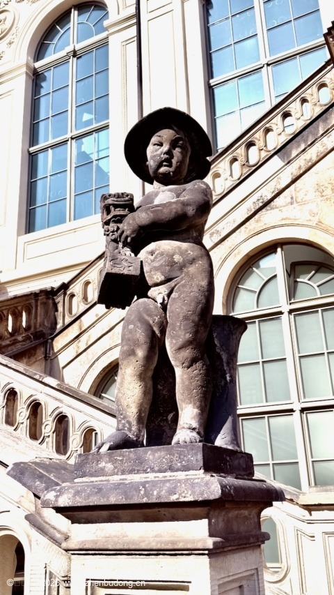 博物馆前的左右童子。左边是个中国小孩。