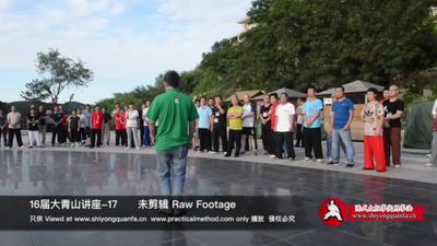 现在练什么呢?他顶住了你了,你一定不要做这个,也别做这个,顶正一动不动,胯领劲,你看,在看啊!到后边儿去了,不用管了。一定不要有这个,就是上身一动也不动,死了就是从胯开始,走底下,看到了吧?我要夸张一点你看昂。