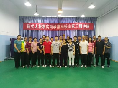 6.10马鞍山晨练6:00-7:00 首先带领学员们练习基本功正圈与反拳,提水拧毛巾六封四闭庇身捶各20个,三遍十三式。给大家讲推手作,间接力,上步推手,与每个学员试手。 上午上课时间9:00-11:00 教室外下着大雨,学员们冒雨前来听课。上午课主要讲解了基本功拧毛巾提水正圈反圈,大小六封四闭庇身捶,活步正反圈。 下午上课时间2:00-5:00 下午雨继续下,复习了套路十三式的练习,讲解了推手当中手不动,背不,上步等作,讲解了套路十字手到上步双推手。 晚上推手课7:00-8:30 先给学员们纠正基本功,带领学员练习十三式, 与每个学员推手,讲解推手当中如何进去,换步,做作,让学员们相互推手练习。 6.11日讲座第二天 晨练6:00-7:00 晨练晨练带领学员练习基本功十三式,讲解了基本功上步铲除,填跨作,进行了腰跨训练。 上午课9:00-11:00 首先带领进行热身运,练习基本功与前十八个作,讲解了套路肘底锤到单鞭等六个作,让每个主要负责学员带领学员练习。 下午课2:00-5:00 下午带领学员练习基本功与前二十四个作四十分钟,把二十七式作教完。对学习们进行基本功推手作的强化训练。从十字手到收式完整复习一遍,带领学员完整练习二十七式。