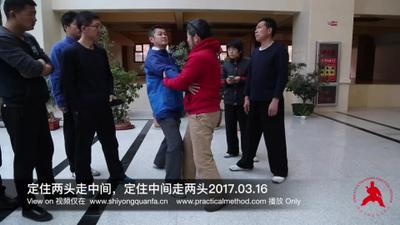 那有了这个点了,他可以反过来用。定住中间打两头或者是动两头,你看,你一过来之后,你拿我吧,你随便推我,他这我固定不住,我要固定住这两点打中间,但我固顶不住他,他一直在跑,但让他跑,哎,我中间固定住了,中间进去了,扶着我的胯,你试,你别动,你来,你试,是不是在动?