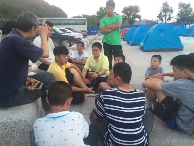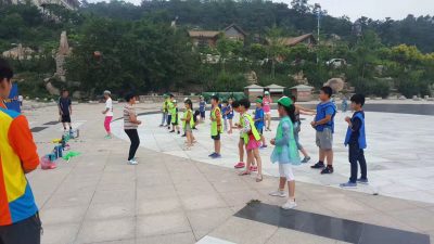 暑假到了,参加夏令营活动的学生也越来越多,为了使同学们有个好的学习机会,大青山风景旅游区特邀请山东大学英语教授,开辟了“英语角”,傍晚同学们聚集在太极广场上,享受着自然凉爽的微风,轻松愉快的学习英语歌曲和单词。