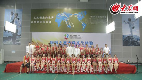 外国啦啦操队员在日照陈中华太极馆学习中国太极文化
