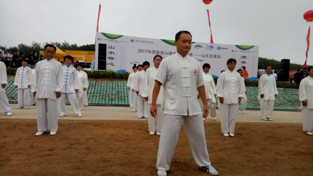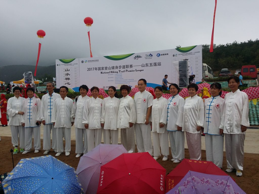 2017年9月10日,国家健身步道联赛山东–五莲站在我县海拔最高的山—-马耳山上启动仪式开幕了!大青山韩瑞教练和宁东吉教练带领五莲县实用拳法各团队到现场展演一路81式。
