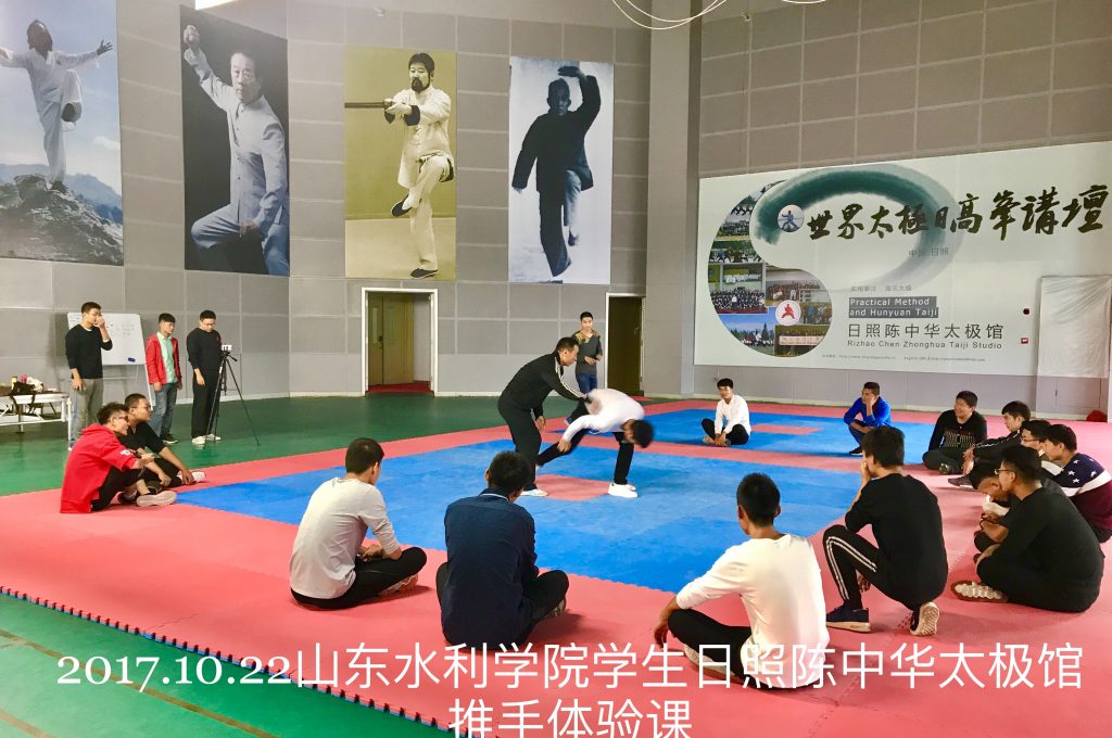 10月22日下午,山东水利职业学院“水韵”太极协会的大学生们来到了日照市陈中华太极馆学习交流太极拳。