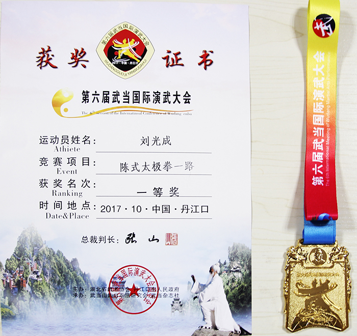 湖北十堰实用拳法学生刘光成带领两位练习实用拳法的弟子,以实用拳法参加陈式太极一路、二路的比赛,在比赛中荣获2金2银1铜的成绩。