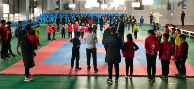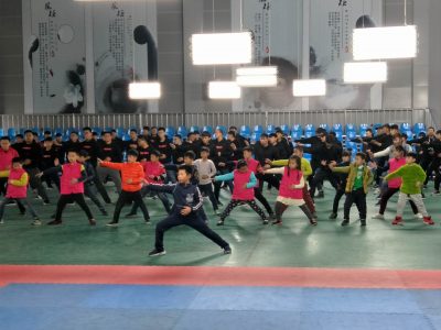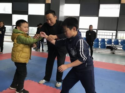 山东水利学院推手队和日照小记者团及家长们同时在日照陈中华太极馆举办活动。显得馆里非常繁忙。