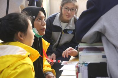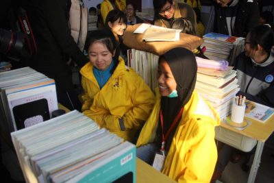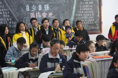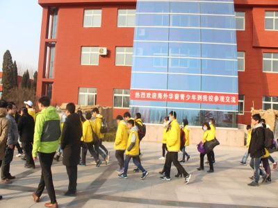 12月26日下午由山东省侨联组织的来自澳大利亚、新西兰、阿根廷、毛里求斯等20多个国家150名学生组成的海外青少年学生代表团,乘坐4两双层豪华大巴车到日照青山学校进行了为期半天的交流访问。