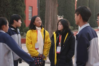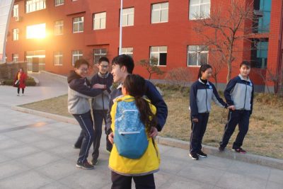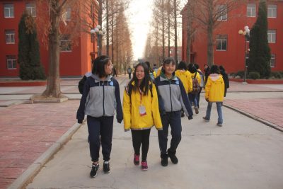 访问结束时部分中外学生相互合影留念,并依依不舍的挥手告别。