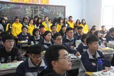 他们首先在领队和学校教师的引导下分成8各组分别到高一8个班进行了教学观摩。