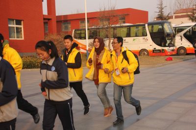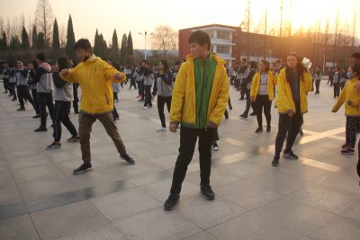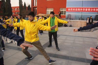 后来又观摩了青山学校大课间跑操和太极拳修习活动,期间海外学子被青山学校课间跑操和太极拳修习场面所震撼,部分海外学子不自觉的加入到了跑操和太极拳修习队伍中。