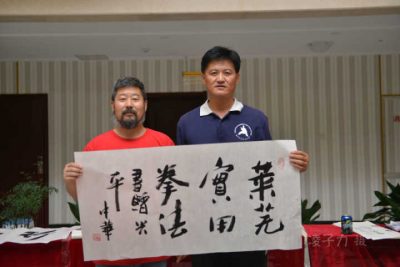 高兴平教练接受陈中华老师赠书法“莱芜实用拳法”。