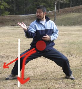 老师说,要让身体的躯干部分下去,绝对不能下,而是躯干要保持不动,两腿分开就下去了,想上来,两腿合在一起就高了。身体想往前去,力要拔着往前去,拔着身体就变长了,前后的长短就够了,就平衡了。如果没有拔开往前走了就倒了。