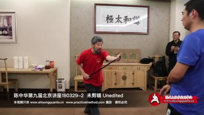 陈老师:你想跑他是没有用的。唉,不是,你这个东西,啊。功夫是什么。你就放在这地方,让对方怎么样搞他搞不了你。并不是说你很快的,很灵活,你跑了。你跑了人抓住你,你还能跑么。他到最后你没,就是说你在这地方你能跑,人最后把你堵到这个角上你还能跑么。