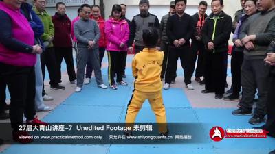 陈老师:推吧,哎呀,她这个劲昨天晚上我没对付的了,你看,她直接到了脚后跟,看出来了吧?在这么细的像激光一样我很难穿透它,瞄上了,这欺负小孩行吗?穿透了吧?你再试,哎呀她这个厉害了,我得高一点,穿过去了,她现在一点劲没有,她就是会用,全部把有利的地方都让她利用了,你试,身上一根棍她有吧?你现在有一根棍了,你再问你爸爸再要一根,两根就能打一般的人,三根打谁都行,要有三根棍的时候打谁都行,但是不要打人哈。