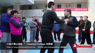 那你就在那看它,你不动,你跟它说:墙,你不是很厉害吗?你打打我试试,它打不了你,只要你坚持不动它就打不了你。它一动,墙一动就怎么样呢?就倒了,你就是罗马的墙,长城的墙它一动就倒了,不能动,所以我们呢,在动作上来说,用很多方法能保持你不动就行了,包括这个动是干什么的?动是为了保护这个不动,你看,他来推我,他一推,你推吧,我一定得想办法动啊,那怎么办呢?
