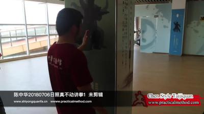 陈老师:不要说同样的话。明白吧。以后再也不这么说了。再这么说。上去就给你一拳啊。因为学拳是什么。是因为你做不到。你说这句话是不应该的。如果你要是我的话,你就不是你了。所以你不是,明白了吧。好顶住。顶住。实上劲。唉好。你看。这是我们正常的晃。现在你看。晃没晃。它不晃。所以有力。学的是什么。你很可能将来比我厉害。但你不是我。听明白了吧。