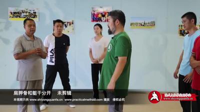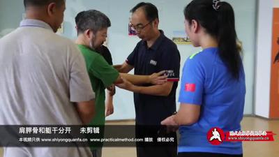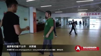 是,陈旭抓我的地方没动吧?这就是内外分开了,你要不分开你用手这么样,你用手现在抓住我你试,哎抓住我,这就是没分开你试出来了吧?现在你试我外面是转的里面没有动过,里面有个芯那个芯没动过只是外面整整一圈在转里面那个东西没动过,这个肩胛骨分不开你的肘是不会动的