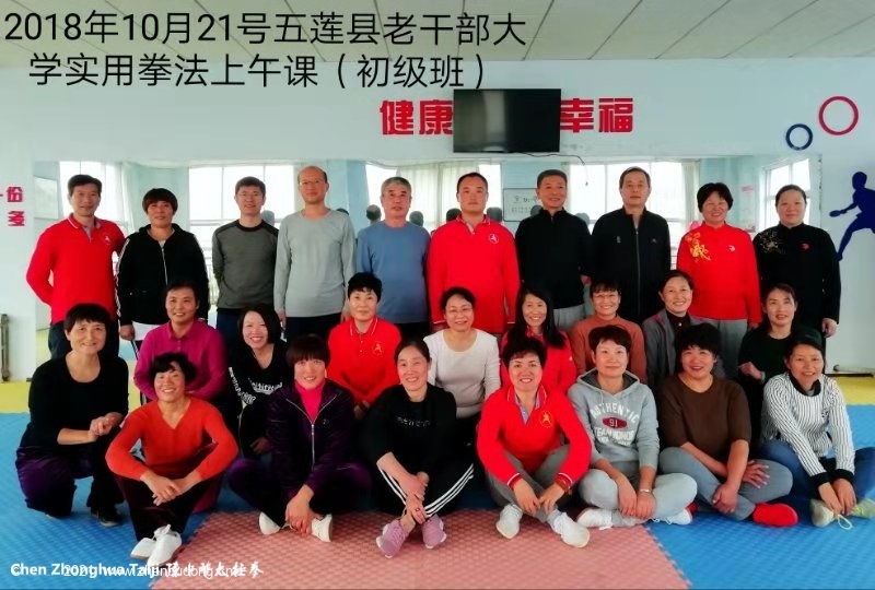 每次上课,邱校长、王校长都早早到校,为我们打开门,烧好水,给我们鼓励,为我们拍照留念。韩教练风雨无阻地从大青山大老远赶来,耐心细致地讲课,一遍又一遍不厌其烦地示范,修正每一位同学的动作。同学们无论年龄大小,都全神贯注、聚精会神模仿和练习。那股认真劲俨然才上一年级的小学生。课间同学们相互交流,取长补短,共同进步,乐在其中,时不时爆发出一阵阵欢快的笑声。在这里,我们不仅学习了太极拳,还收获到纯真的友谊。学习太极拳强身健体的同时,亦得到了愉悦的精神享受,大家都变得精神焕发。这是多么难得和令人激动的事情啊!