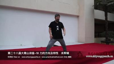 陈中华老师:这个力的走向和走的方法他有一个大的要求就说是力从来是不允许回头的,这个力呢是不允许回头的,再一个呢,再一个是力呢不能断开的他要继续的走,所以呢要在身上找很多的部位,把我们的身体分开,分阴阳,分完之后,每一个不同的部位都加在一起,来完成这一个动作。