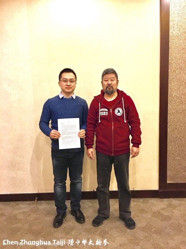 2019.01.10 北京学生曹利民在北京珀丽酒店向陈中华老师递交了拜师贴。孙中华、凌子明、何心彤、李广宇见证。
