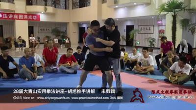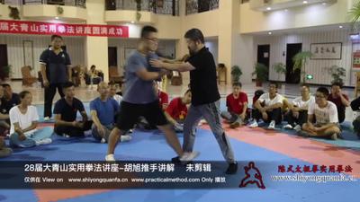 嗯,有了。在腿上使上劲了。就这么几个动作。就这个地方的偏,你上边吧。你试一试,唉,这就这样推就行了。你试,这叫正吧,你看。他一偏这就不行了。这个有点投机取巧。我一听说他要换气,我立刻把他打下去。打的他这个换气。唉、你看。这不在这么。他不换气没问题。但是你看。就找找,但是我晃了它不行了,你们看啊。这个不行了。胡旭:这我就能找到。陈老师:唉,这个他有劲了。你试。唉,你看。没了。是不是和你没多大关系。走的我自己。这个那天,在那个台上。我说,跟那个很壮那个小伙儿,唉,跟那个壮的小伙说。