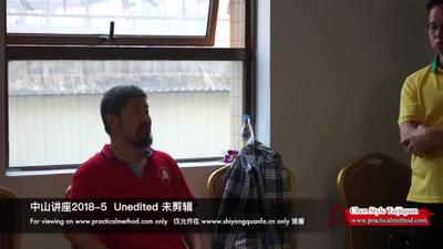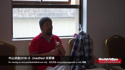 杨德奎是吧?平常想的挺好,跟人一交手,干什么?搂住就不能再放了,是吧?顶上去就不能撤了,你一放人家就把你干倒了。你一撤你出圈啦。他不管是,你说出圈不是实战,但是在这个环境下出圈就是实战。参加推手比赛出圈就是实战,因为,这就是战演,实战在这个规定下,这就是实战,你不要说出了圈不算,很多人的逻辑是不对的。参加比赛,那就叫比赛的实战,在这个实战中你出了圈,犯了规,就是败了。因为,那就是规范。